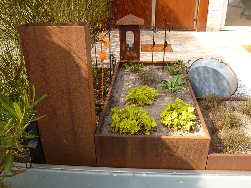 Sein Charm ist unübertroffen, Cortenstahl wirkt vom ersten Tag an durch die gezielt angerostete Oberfläche. „Alt von Anfang an!“ – Wie modern und zeitgemäß das wirkt, zeigen auch unsere Stahlobjekte für Haus und Garten.